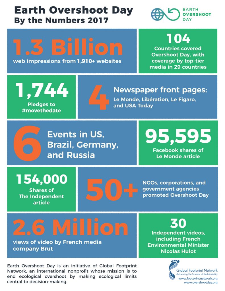 Earth Overshoot Day 2017 Highlights 30 August 2017 Blog 2017 was an exceptional year for building the momentum to #movethedate!