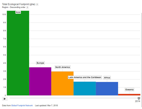 We used the Google data platform to create visualizations of three trends from our new National Footprint and Biocapacity Accounts 2018 Edition, which launched Monday, April 9, in Europe and will launch Monday, April 16, in the United States. In...